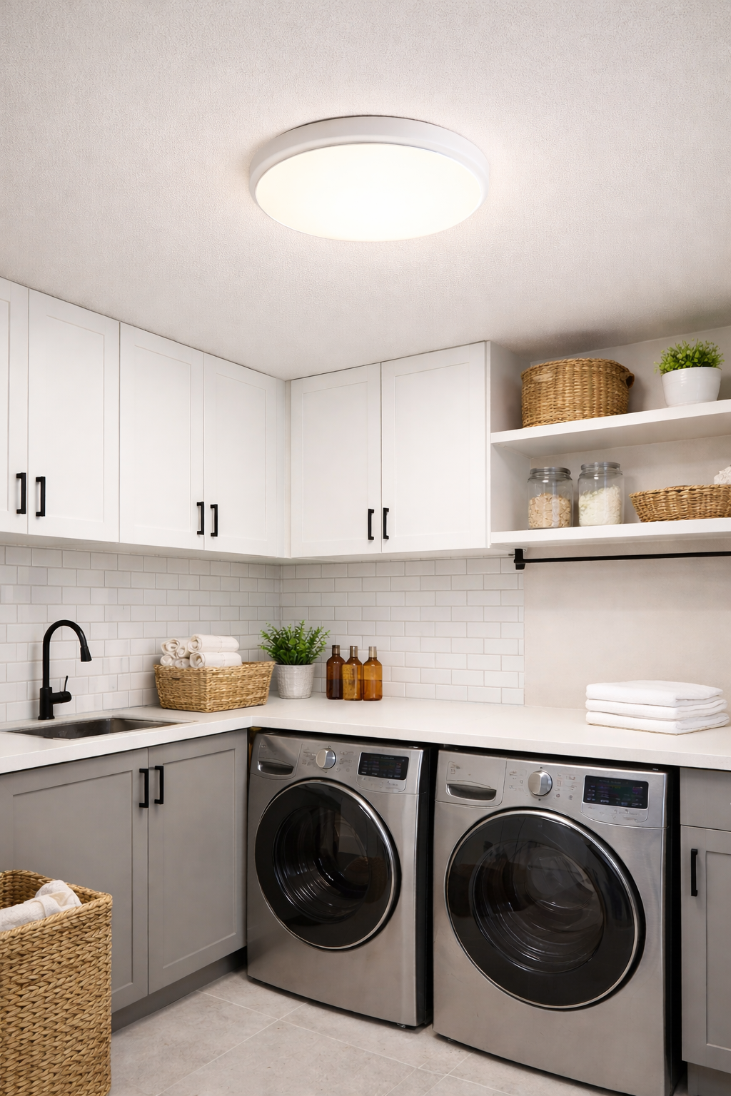 This sleek flush-mount ceiling light features a clean, circular silhouette with a smooth, minimalist finish that blends effortlessly into modern interiors. Its low-profile design makes it ideal for spaces with lower ceilings while still delivering soft, even illumination. The frosted diffuser ensures glare-free lighting, creating a calm and comfortable atmosphere. Perfect for hallways, bedrooms, apartments, offices, and contemporary living areas, it offers practical lighting with a refined, understated aesthetic.