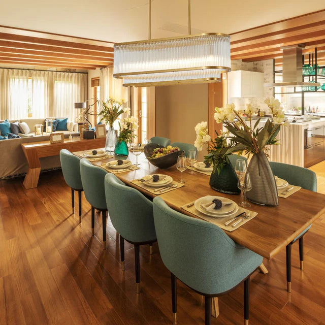 This elegant linear pendant light features a refined oval silhouette framed by finely ribbed glass, softly diffusing light to create a warm and inviting glow. The layered design adds depth and texture, striking a perfect balance between contemporary structure and timeless sophistication. Ideal above dining tables, kitchen islands, or statement bar areas, it offers both presence and subtlety without overwhelming the space. Available in a sleek black finish or a warm brass variant, this light brings versatility and understated luxury, enhancing interiors with a sense of calm refinement and modern elegance.