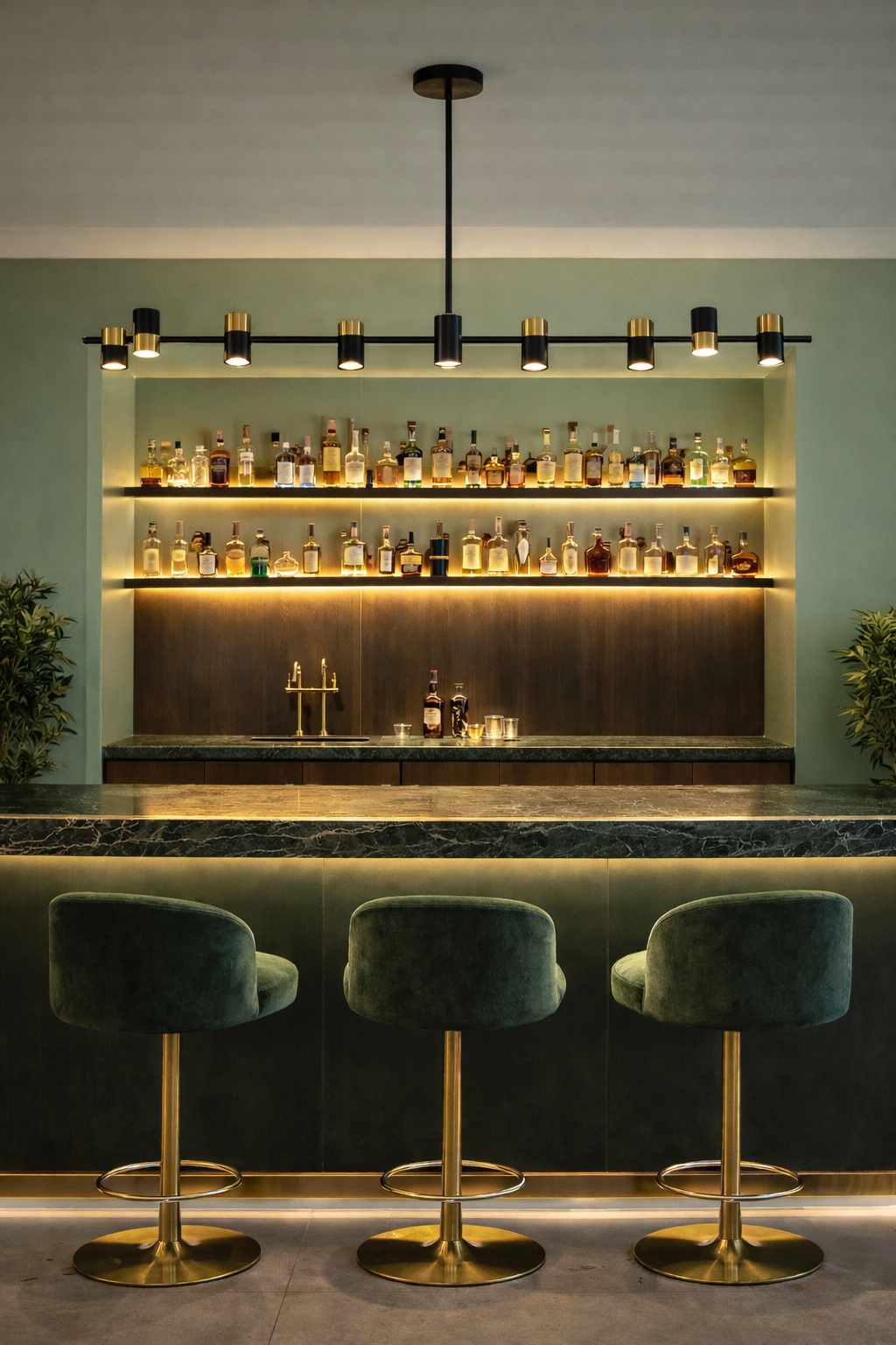 This striking linear pendant light features a slim black frame accented with satin brass cylindrical shades for a refined, contemporary look. Its long horizontal profile delivers evenly distributed illumination, making it ideal for kitchen islands, dining tables, or large workspaces. The clean lines and balanced proportions create a bold yet elegant focal point without overwhelming the space. Blending modern minimalism with a touch of luxury, it suits both residential and commercial interiors.