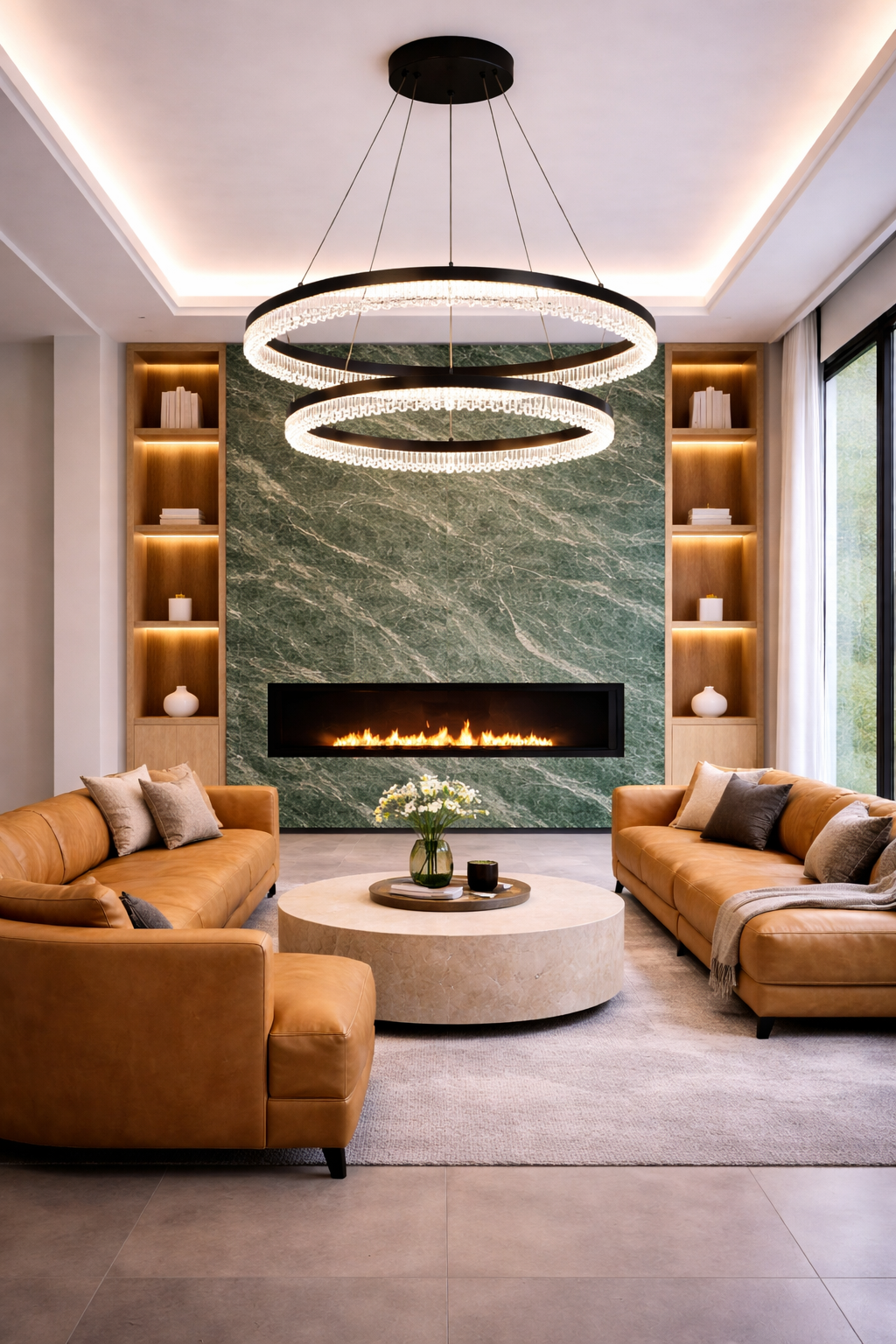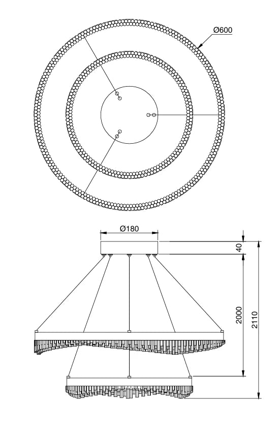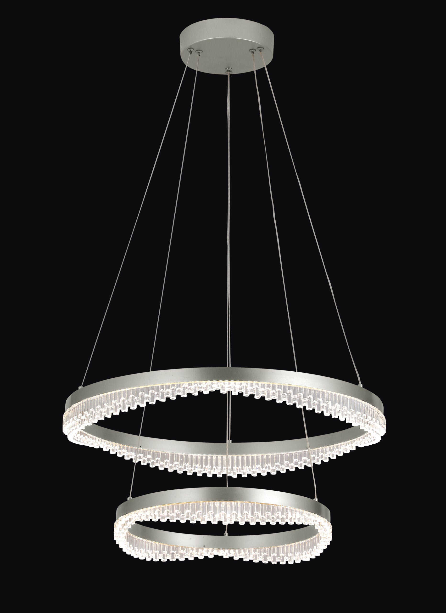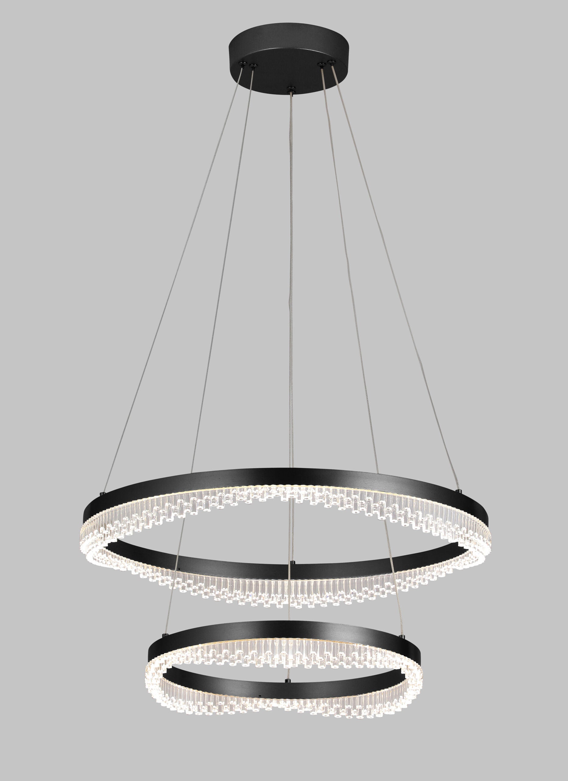 This striking double ring pendant light embodies refined modern elegance, combining clean architectural form with delicate crystal look detailing. The layered circular design creates depth and visual interest, while the faceted crystal elements softly diffuse light for a warm, ambient glow. Suspended by fine cables, it appears effortlessly weightless, making it an ideal statement piece without overwhelming a space. Available in sophisticated finishes, it seamlessly complements both contemporary and classic interiors. Perfect for living areas, dining spaces, or grand entryways, this piece delivers both functional illumination and elevated design presence.